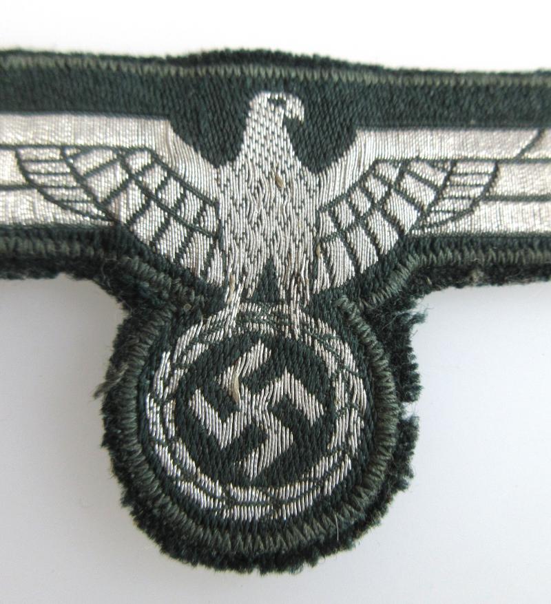 A nice condition, flat wire NCO's Officers tunic eagle. This the type of eagle often used on the Waffenrock tunic. As with all my cloth items it has been U.V Light tested with no issues.