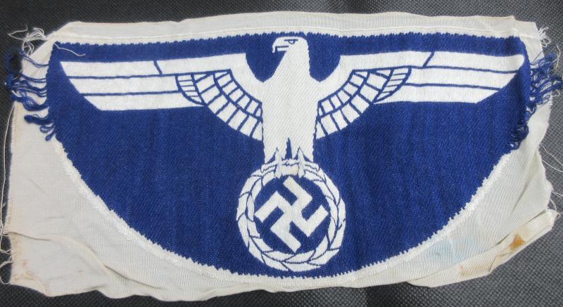 A nice, Kriegsmarine sports vest eagle. Shows staining due age, just needs ironing flat to make a good display piece.