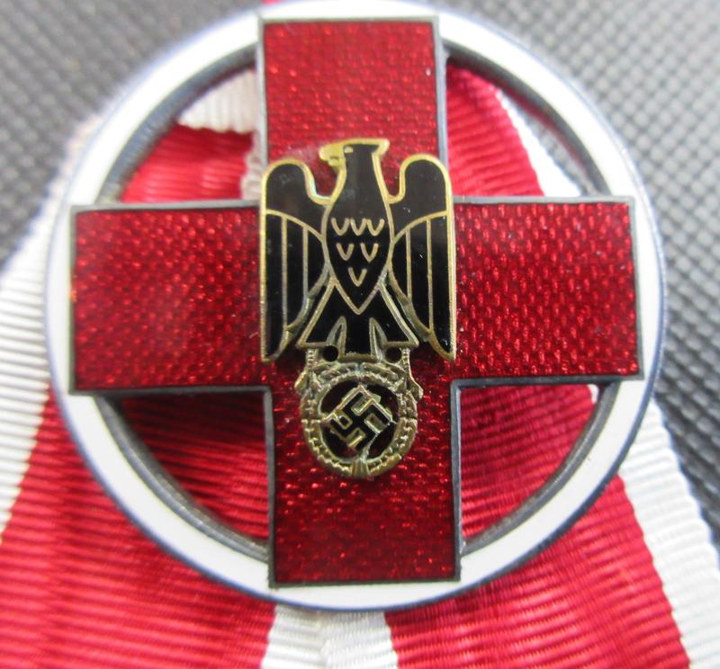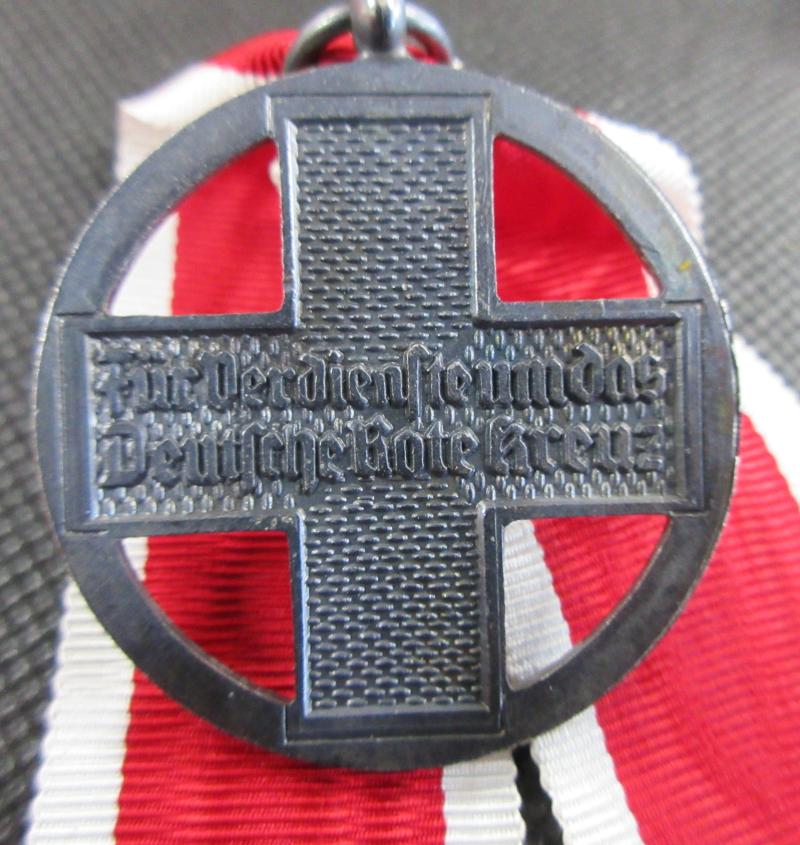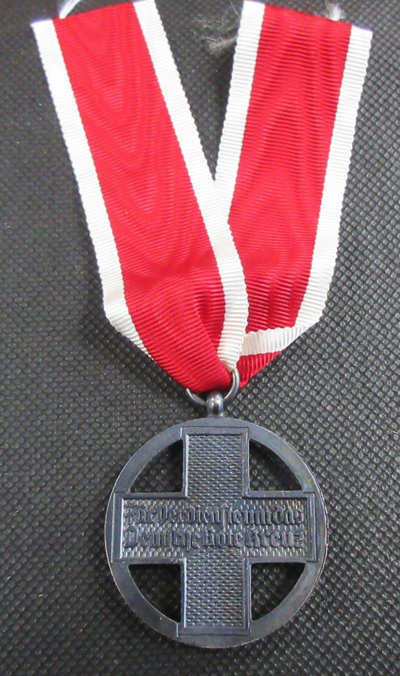 A very good condition, German Red Cross Medal. This is the 1937 to 1939 type. Retains all of its enamelling. Very nice looking piece. the ribbon is most likely a replacement piece.