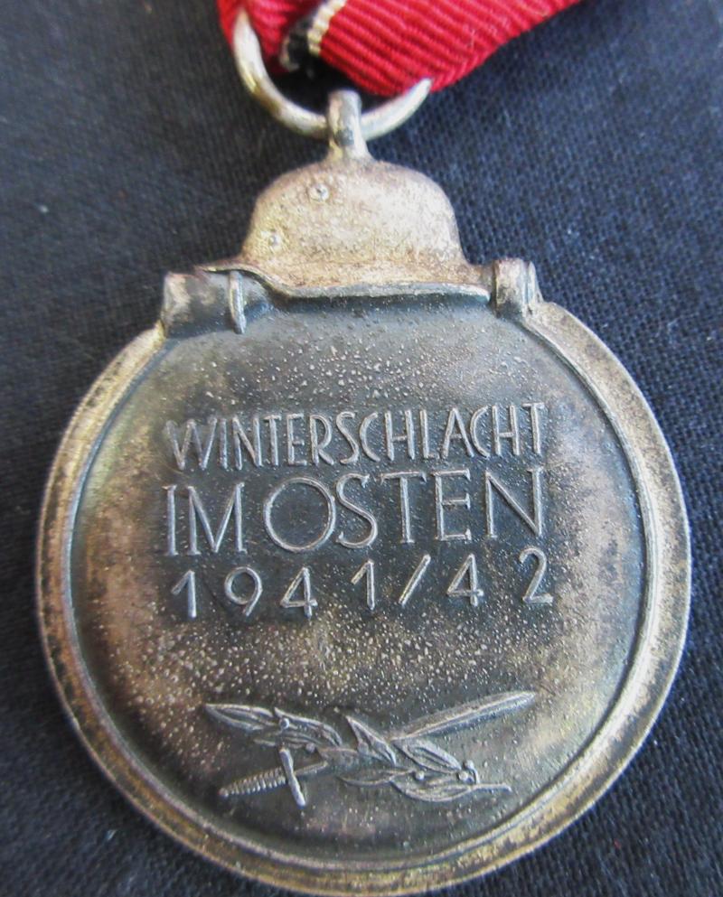Shows wear to the medal but still retains some of its finish. The ribbon shows glue stains from being displayed or affixed in an album.