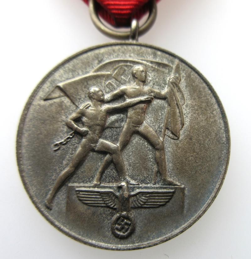 A nice, used condition Austrian Anschluss Medal. Comes on its original piece of ribbon which still has its attaching pin.