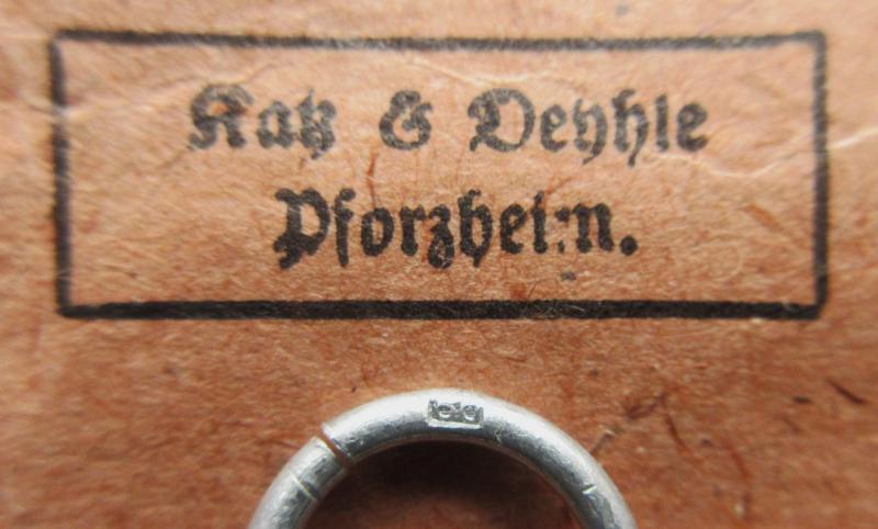The medal has never been attached to the ribbon and the ring is numbered 60 for the maker Katz & Deyhle, Pforzheim.