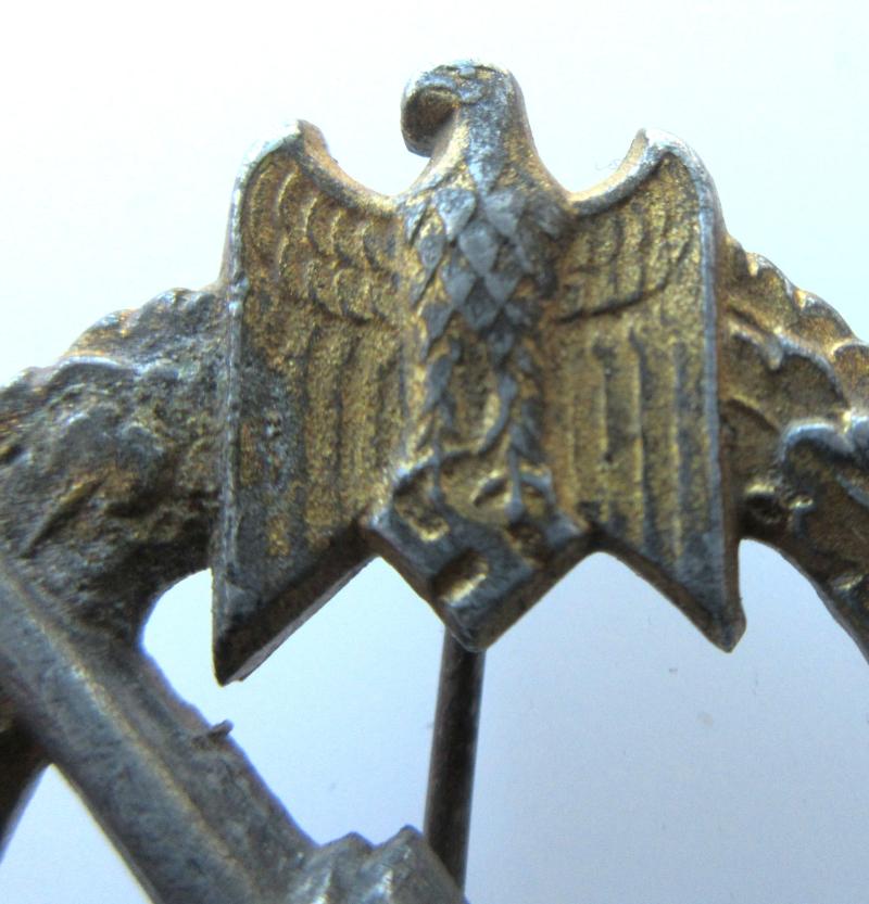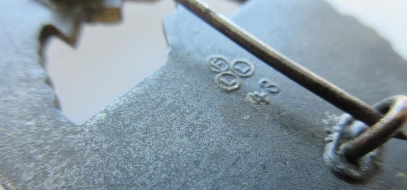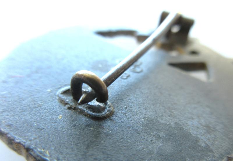 Shows wear and some slight rubbing to the highlights. Still retains its attaching pin and clasp and is is maker marked FFL 43 for the maker Friedrich Linden, Lüdenscheld.
