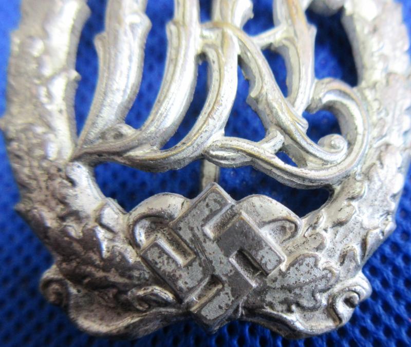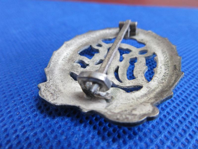 A nice, used condition Silver grade DRL sports badge. Still has some of its original silver wash finish all over. Has its original attaching pin and catch and has its makers details to the back.
