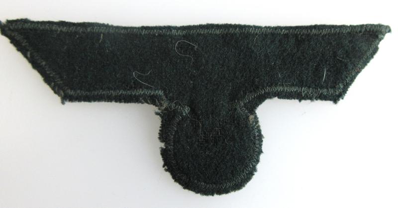 A nice condition, flat wire NCO's Officers tunic eagle. This the type of eagle often used on the Waffenrock tunic. As with all my cloth items it has been U.V Light tested with no issues.