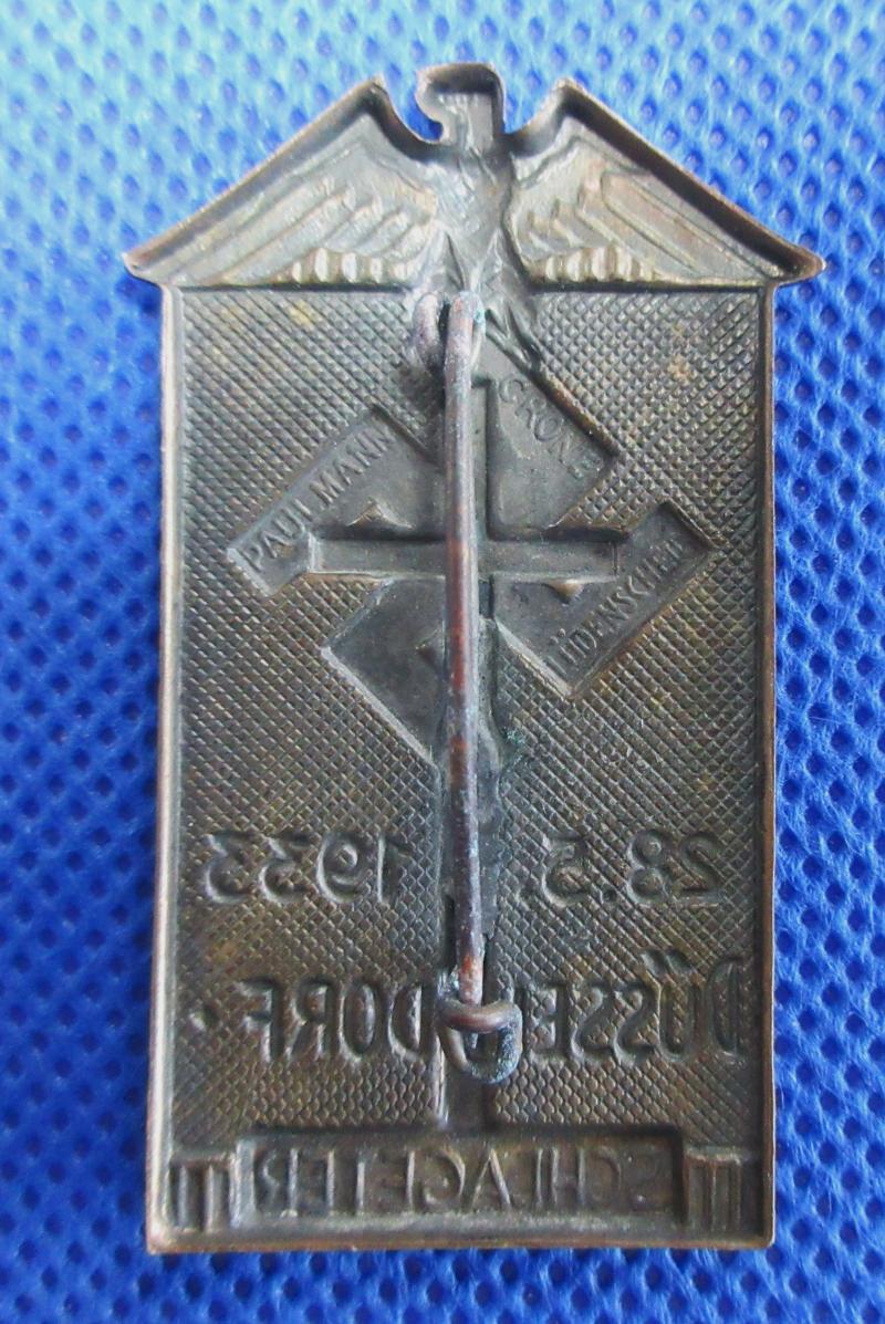 A very nice nice condition, Tinnie/Day badge for 28.5.1933 Dusseldorf 'Schlageter' badge. Still retains its attaching pin to the back