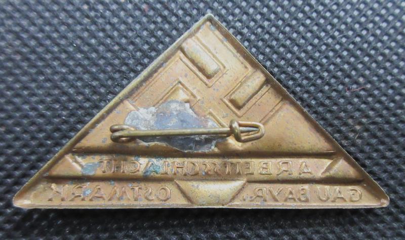 A nice Arbietsschlacht Gau Bayr,Ostmark tinnie. Good condition and still retains its attaching pin.