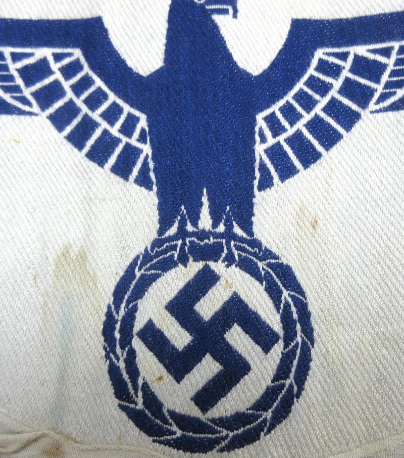 A nice, Kriegsmarine sports vest eagle. Shows staining due age, just needs ironing flat to make a good display piece.