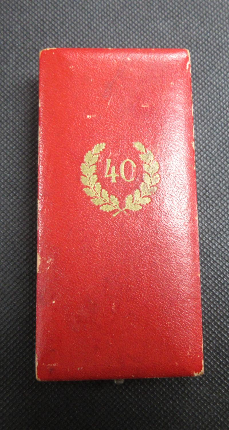 A nice condition, 40 Year Faithfull Service Cross and its original case of issue. Comes on its original piece of ribbon which still has its attaching pin.